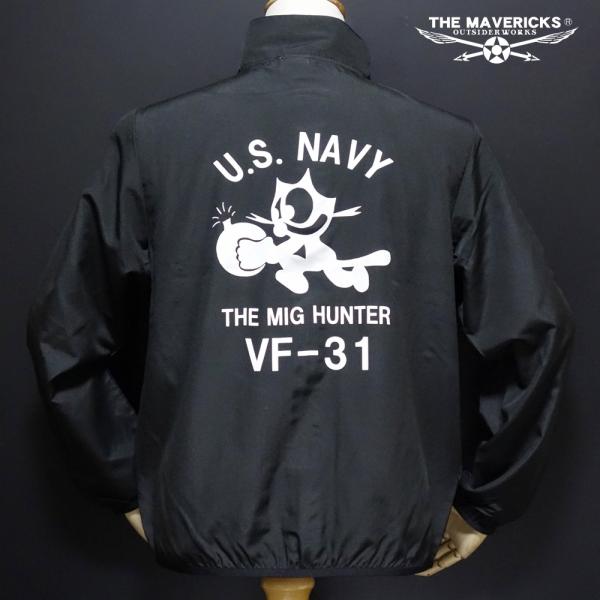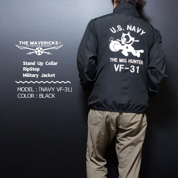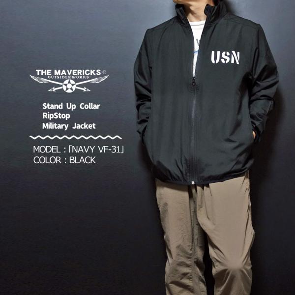 THE MAVERICKS ブランド スタンドカラー ミリタリー ジャケット オールマイティー 多目的 米海軍 NAVY 黒猫 ブラック 黒 薄手