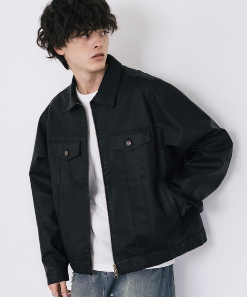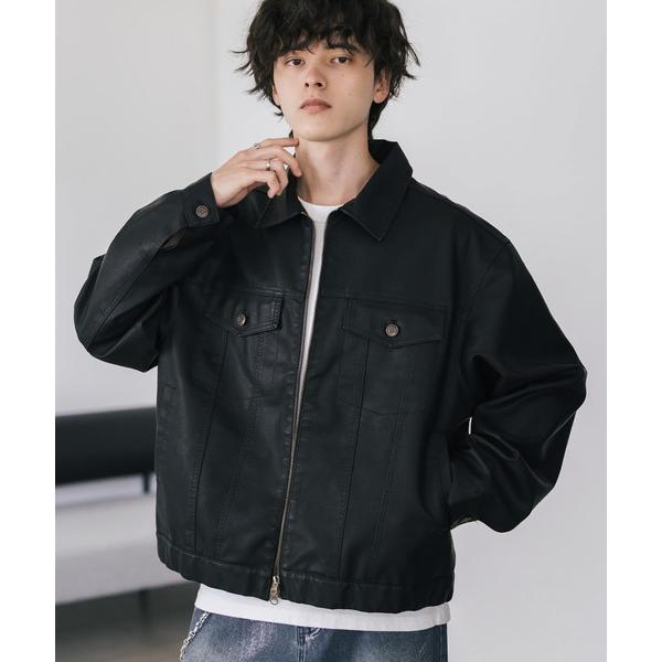 革ジャン ライダース ヴィンテージ加工PUレザーダブルジップショートジャケット/3rdタイプライダース メンズ レディース
