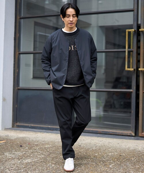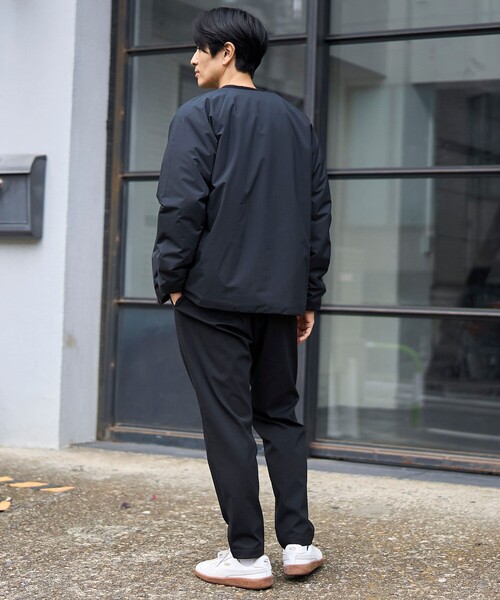 コート ジャケット ウィンドブロックノーカラーカーデ「撥水、防風、抗菌防臭(中綿)」 メンズ