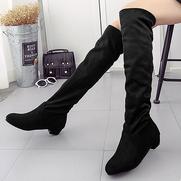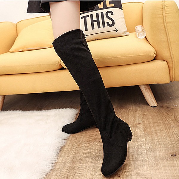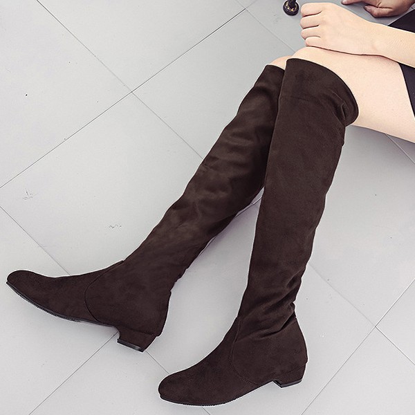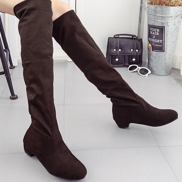 875円 3点購入クーポンで! ニーハイブーツ ブーツ レディース 秋 冬 ローヒール 安い ロングスエード調 大きいサイズ 美脚 ^bo-596^