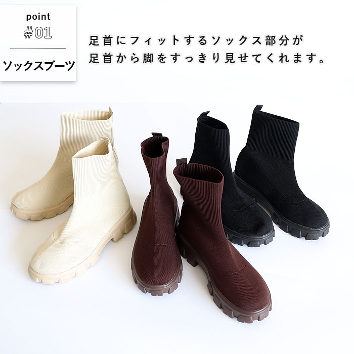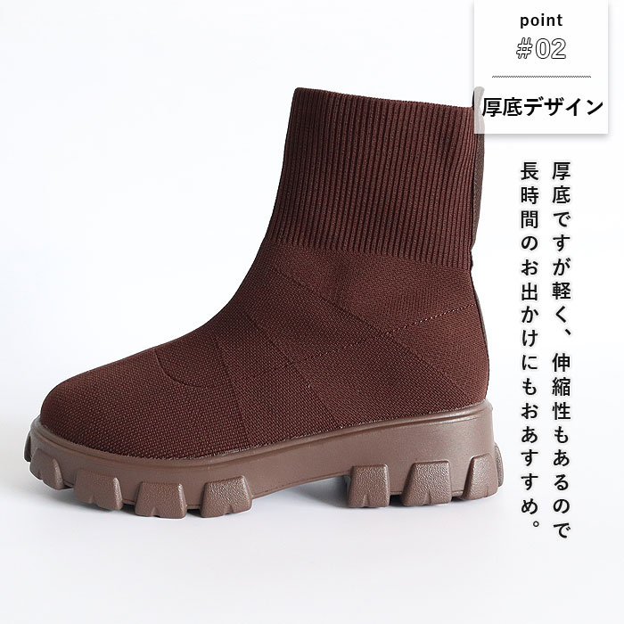 903円 3点購入クーポンで! 靴 レディース シューズ ソックスブーツ 秋 冬 黒 白 おしゃれ 厚底 フライニット ショートブーツ スリッポン 脱ぎ履き楽^bo-967^