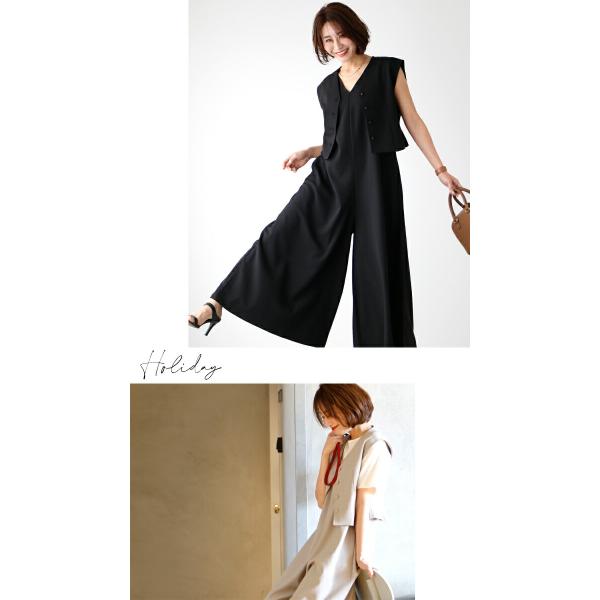 オールインワン ジレ ショートジレ セットアップ オリジナル Vネック きれいめ ストレート ワイド 体型カバー 着回し