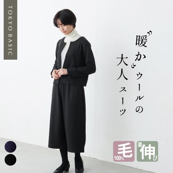卒業式 母 服装 パンツスーツ 40代 入学式 ママ セレモニースーツ 日本製 50代 圧縮ウール ノーカラー ジャケット ガウチョ パンツ