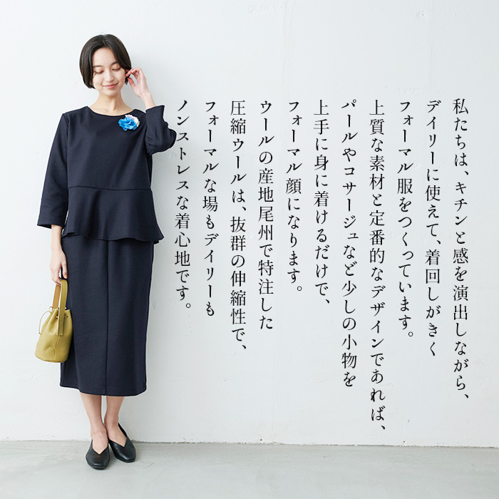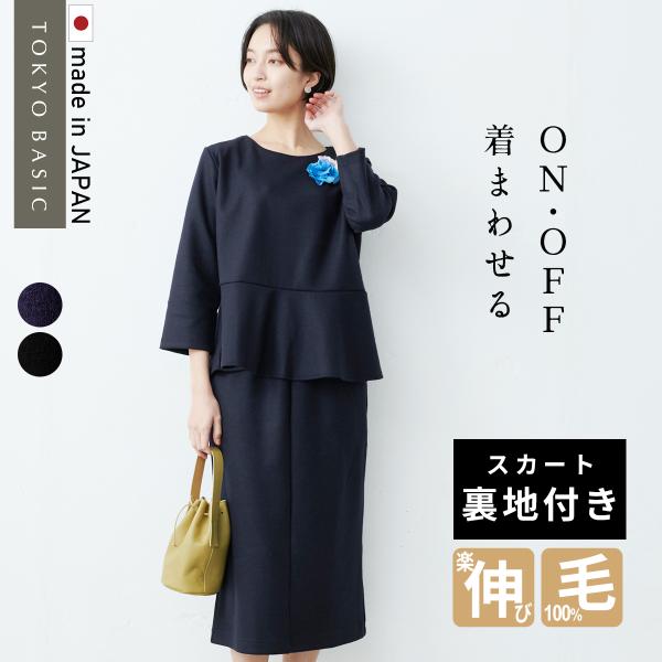 スカート裏地付き 卒業式 母 服装 入学式 ママ セレモニースーツ 日本製 40代 50代 圧縮 ウール100% ペプラムプルオーバー ロングスカート