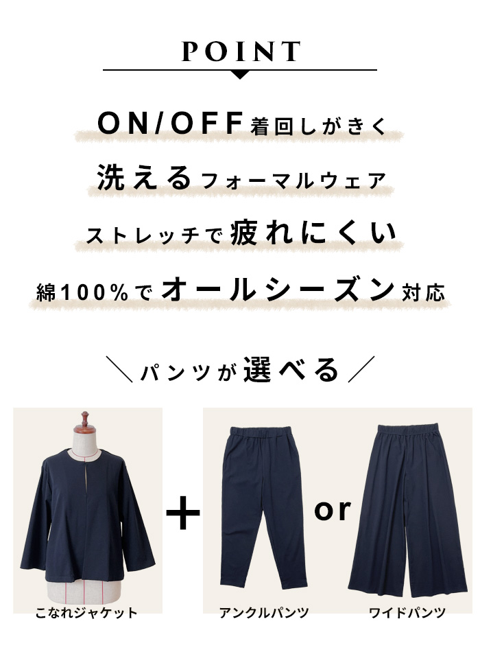 卒業式 母 服装 パンツスーツ 40代 入学式 ママ セレモニースーツ 日本製 洗える 50代 強撚糸 コットン100% こなれジャケット 選べるパンツ 2点セット