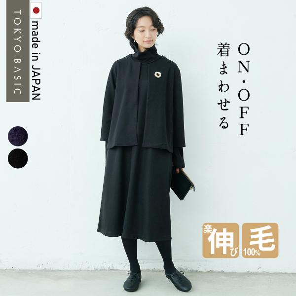 日本製 卒業式 母 服装 入学式 ママ セレモニースーツ 40代 50代 体型カバー 圧縮 ウール100% こなれジャケット タートルワンピース セレモニーワンピース