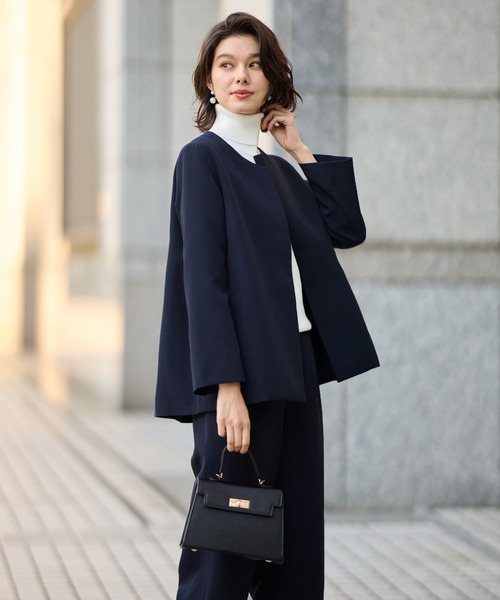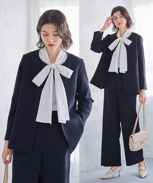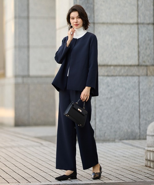 セレモニースーツ セットアップ 「S-3Lサイズ」フレアーラインジャケットワイドパンツセットアップスーツ レディース