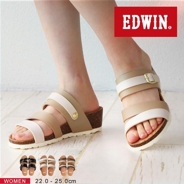 エドウィン コンフォートサンダル レディース アーチサポート ヒール4cm 疲れにくい レジャー アウトドア 天然コルク 黒 ブラック ベージュ ブラウン 6012 爆買