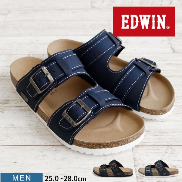 エドウィン コンフォートサンダル メンズ フットベッド アーチサポート レジャー アウトドア 天然コルク ブラック 黒 ネイビー EDWIN 9128 爆買