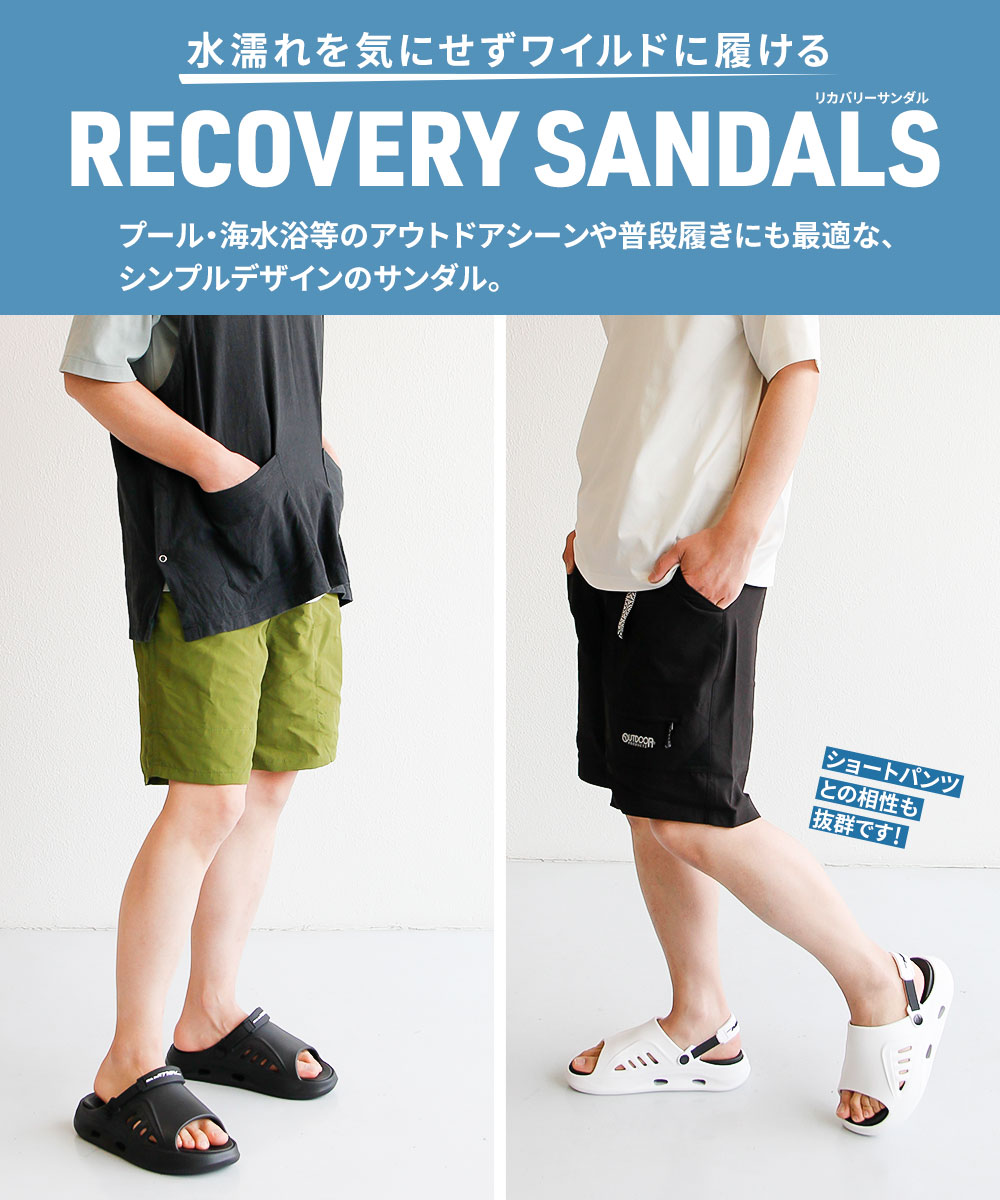リカバリーサンダル メンズ 水陸両用 厚底 軽量 水遊び 夏 川 アウトドア レジャー スポーツ つっかけ 黒 白 ブラック ホワイト nev 817 爆買