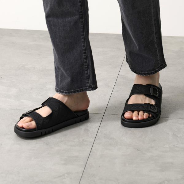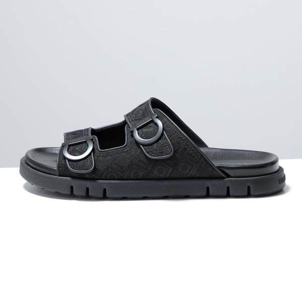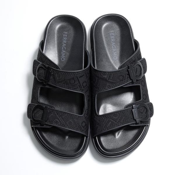 FERRAGAMO フェラガモ コンフォートサンダル M COLLY JCQ 775573 メンズ レザー ダブルストラップ ガンチーニ ジャガード フラット 3.5cm 靴 NERO/LOGO