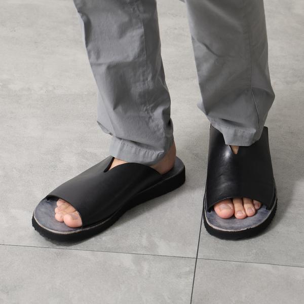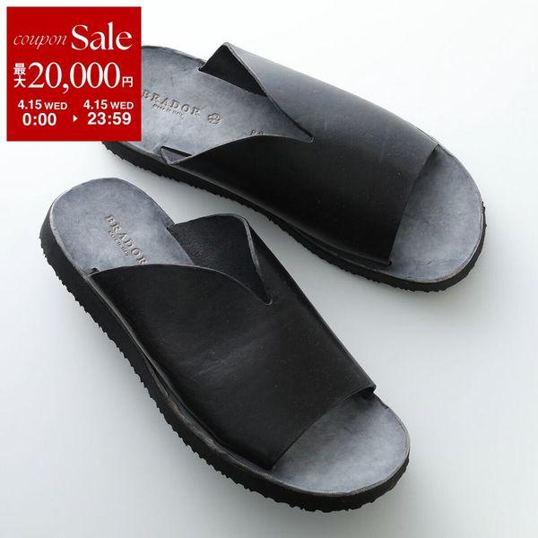 BRADOR ブラドール サンダル 93571 メンズ T/CAPO フラット スライドサンダル タンニン レザー コンフォート ロゴ シューズ 靴 NERO