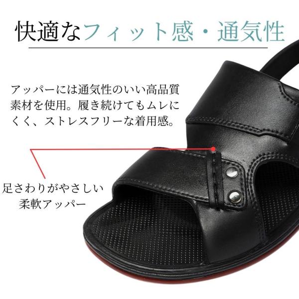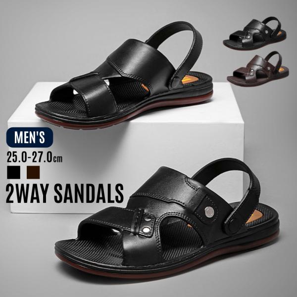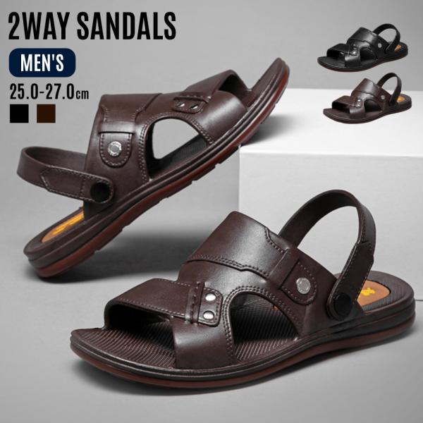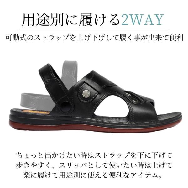 2WAYサンダル メンズ レザー 合皮 スリッパ つっかけ バックストラップ カジュアル 疲れにくい ブラック ブラウン