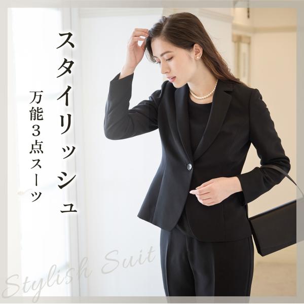 喪服 レディース ブラックフォーマル 3点セット 前開きワンピース パンツスーツ 礼服 卒園式 卒業式 法事 葬式 お通夜 大きいサイズ