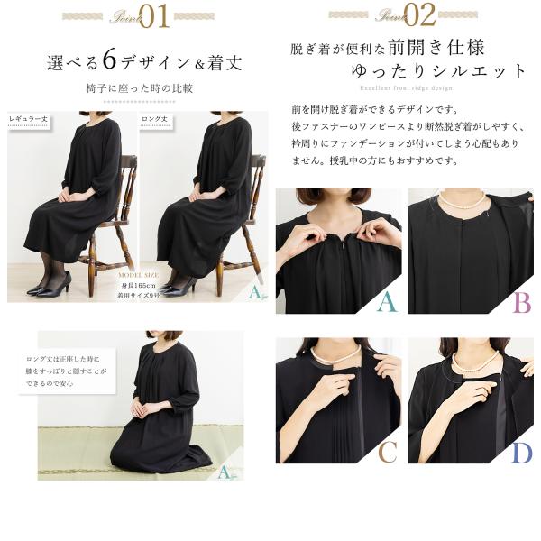 喪服 礼服 レディース オールシーズン ブラックフォーマル 洗える ワンピース 前開き 30代 40代 50代 60代 ロング丈 試着チケット対象
