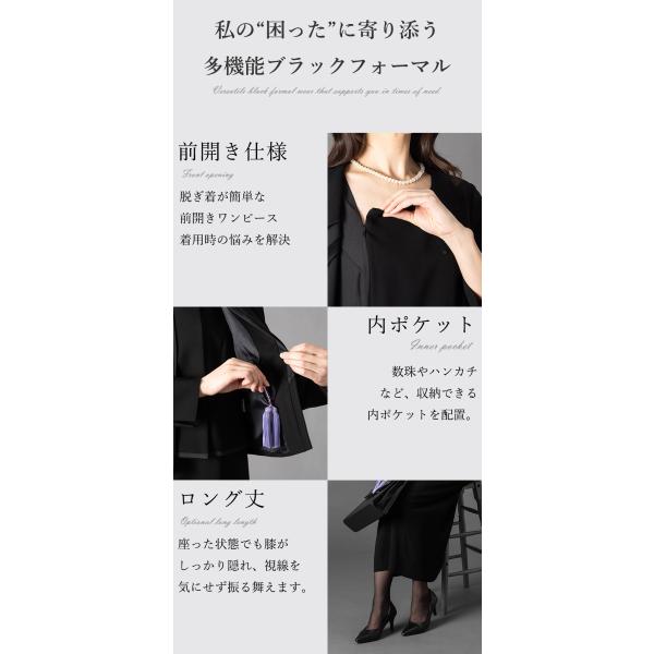 喪服 礼服 レディース 前開き ブラックフォーマル 洗える 40代 50代 60代 オールシーズン ロング丈 ゆったり 体型カバー 試着チケット対象