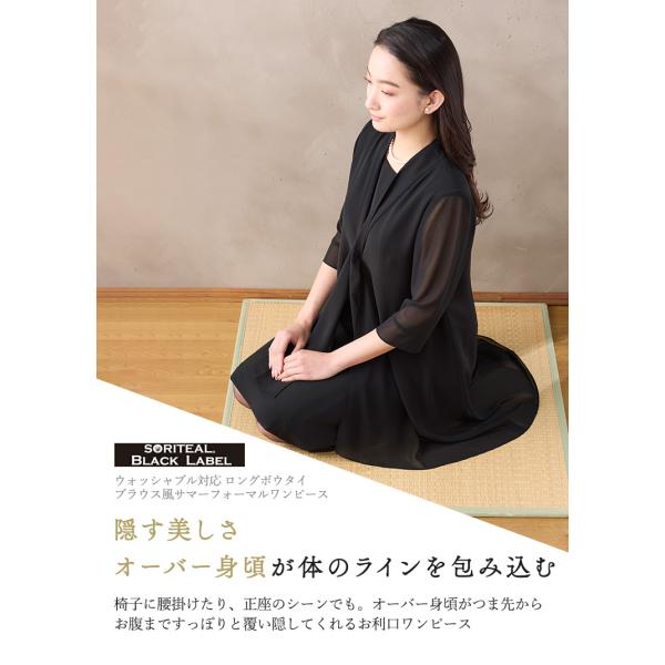夏用 ブラックフォーマル レディース スーツ 喪服 サマー 夏向け 礼服 ウォッシャブル対応 ロングボウタイブラウス風サマーフォーマルワンピース