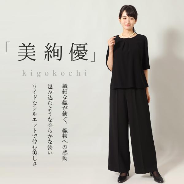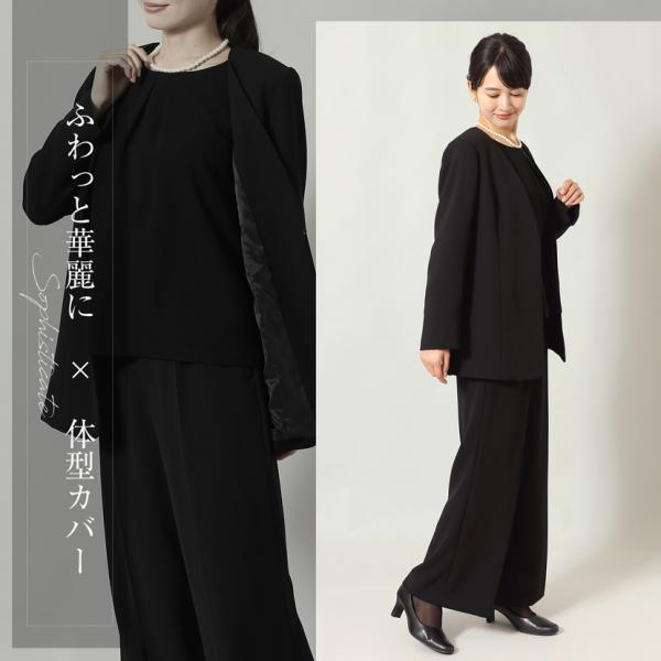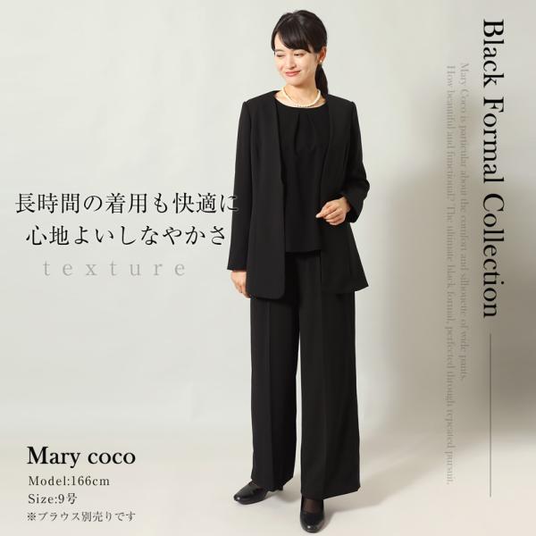 洗える ブラックフォーマル フォーマル ノーカラージャケット ワイドパンツ パンツ ボトムス 2点セット セット 冠婚葬祭 喪服 準喪服 卒入学 mc-2410