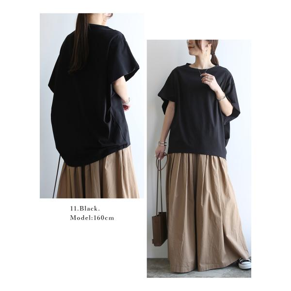 カットソー レディース 半袖 綿 tシャツ トップス コットン 白 黒 無地 春 夏 体型カバー ドルマン ゆったり ワイド 着回し おしゃれ