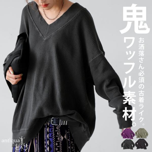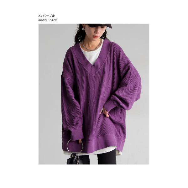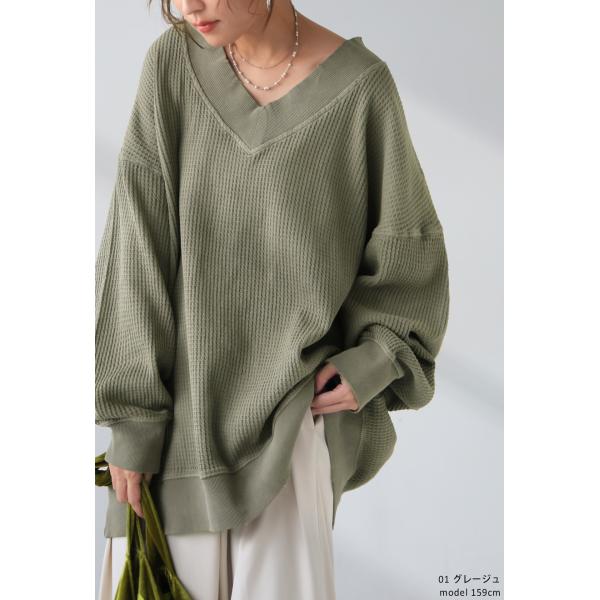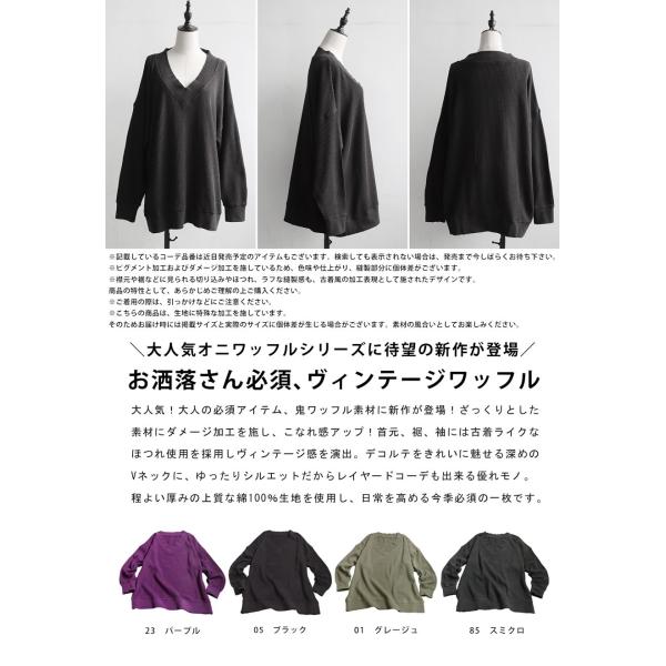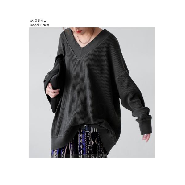 ピグメント加工 鬼ワッフル VネックPO レディース 送料無料・メール便不可