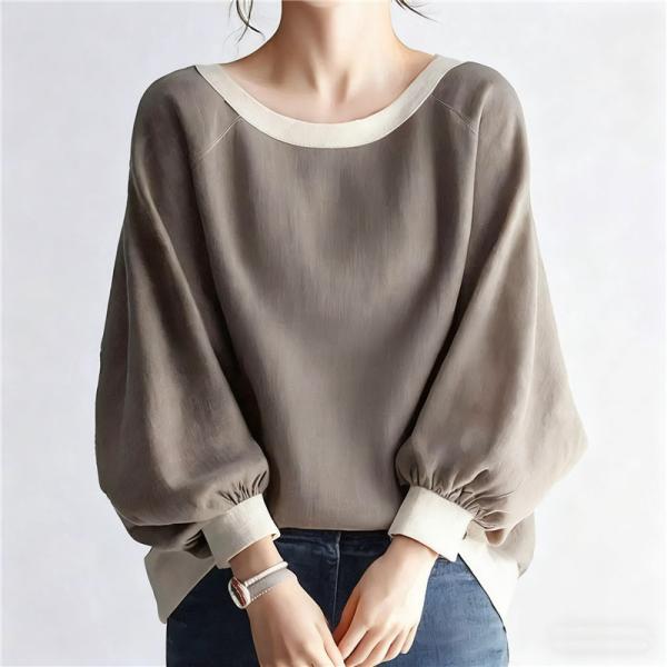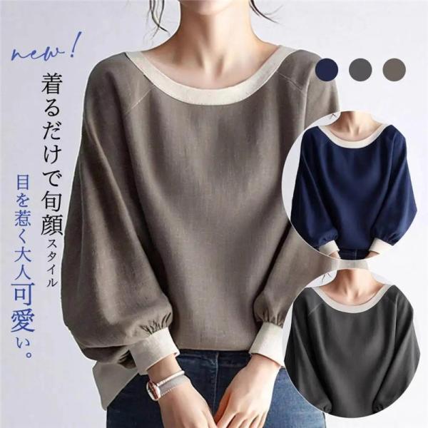 Tシャツ長袖レディース プルオーバーきれいめ バイカラーtシャツ トップス ドルマンスリーブ ゆったり ショート丈 可愛い 秋物 冬インナー 秋コーデ 春コーデ