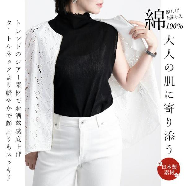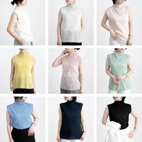 【送料無料/再入荷】【日本生地使用】綿チュールノースリーブT 9色 M-LL 洗える ハイネック レディース トップス ニット