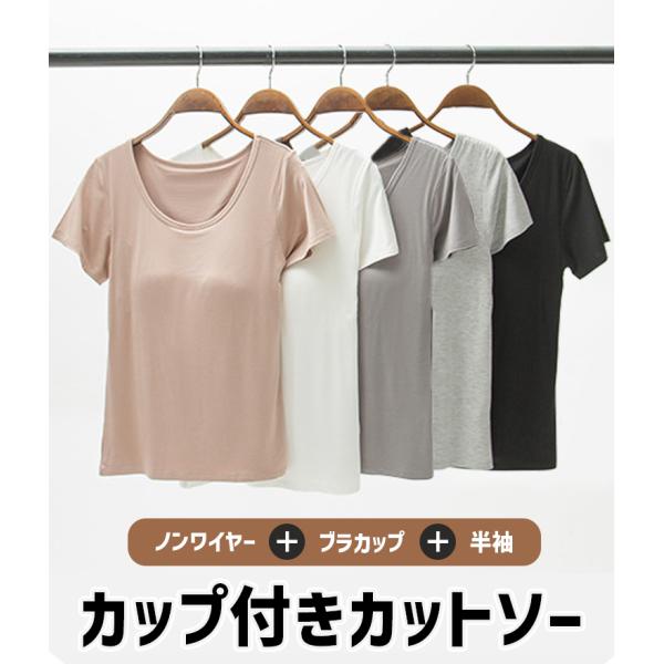 カップ付きtシャツ 半袖 ゆったり ルームウェア ブラトップインナー レディース 女性 半袖シャツ トップス おしゃれ 大きいサイズ 夏 シンプル 無地 tシャツ