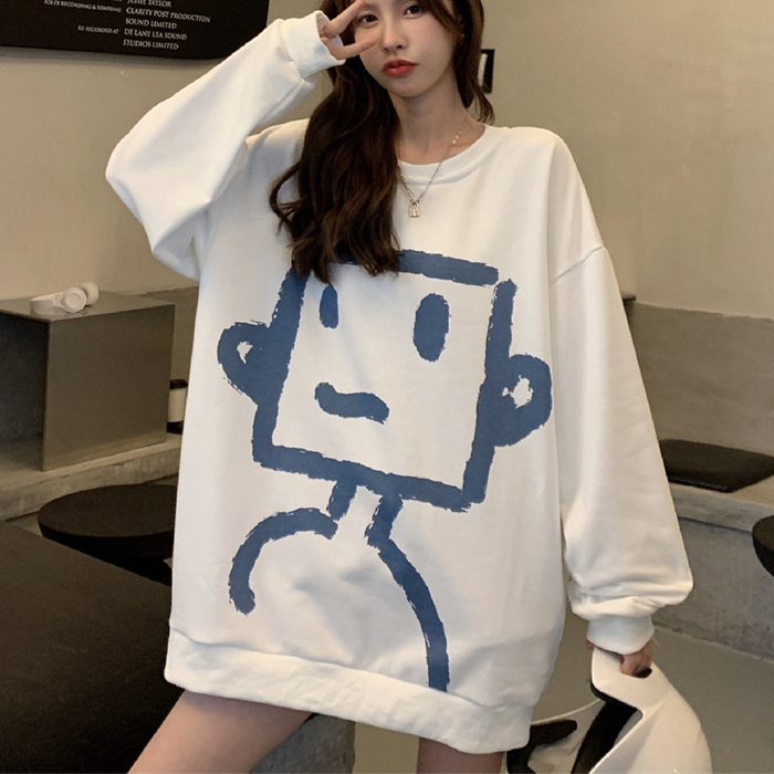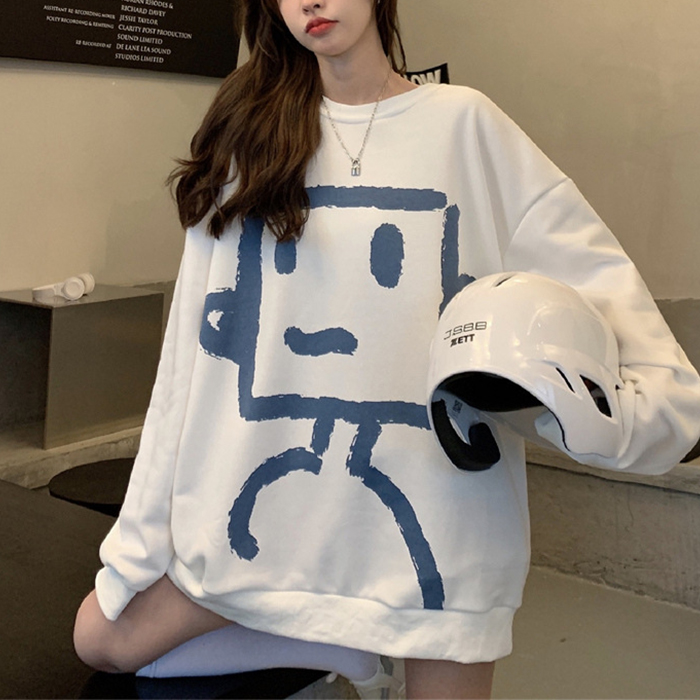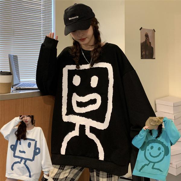 レディース tシャツ ロンT カットソー 長袖 トップス クルーネック プリント 春 秋 ビッグ 大きめ かわいい ビッグTシャツ