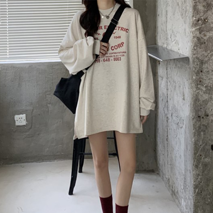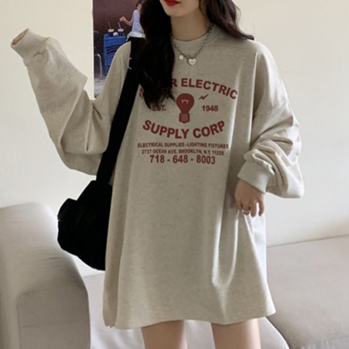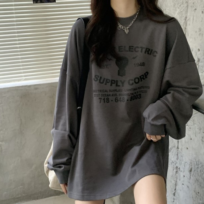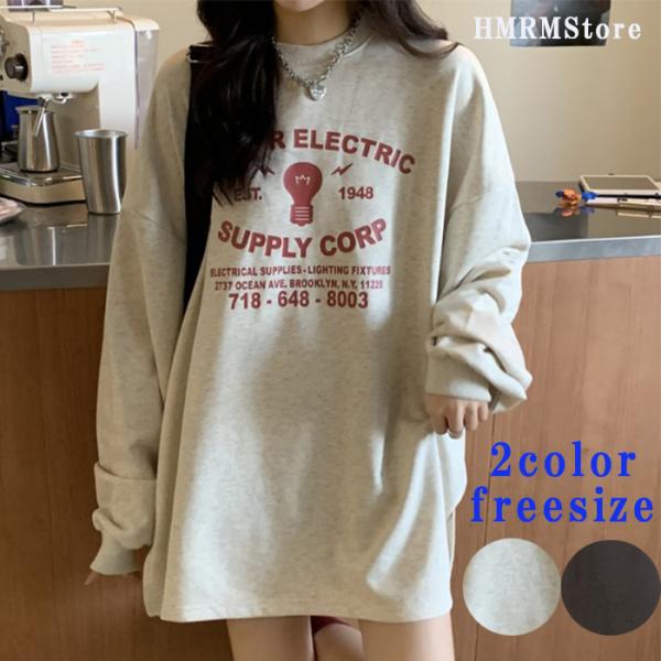 レディース Tシャツ tシャツ カットソー 長袖 ロンT トップス ロングスリーブTシャツ 春 秋 クルーネック ロゴ プリント ビッグ 大きめ かわいい