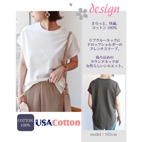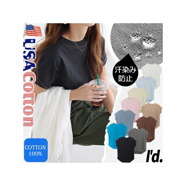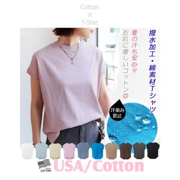【送料無料】撥水。汗染み防止 USA 綿100% Tシャツ フレンチスリーブ 撥水Tシャツ 汗じみ防止 夏Tシャツ レディース USAコットン ラウンドヘム 10011