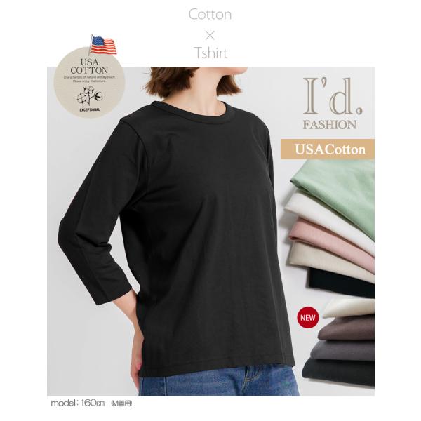 大人気!残りわずか★ USAコットン 綿100% 七分袖 丸首 Tシャツ カットソー 無地 レディース 大きいサイズ 春夏秋 コットン100% M L LL サイズ 9611