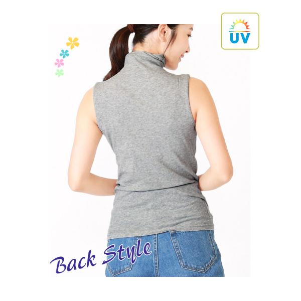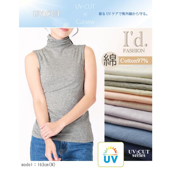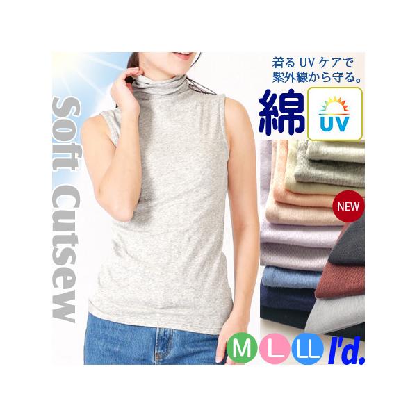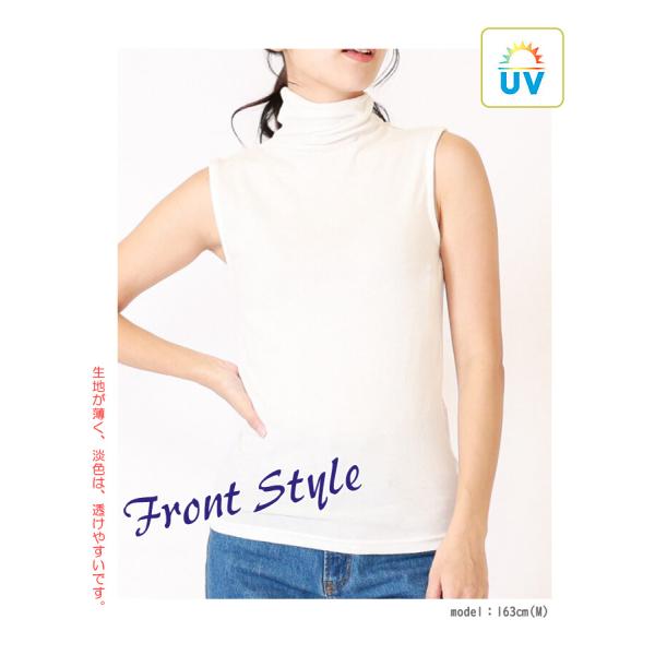 【送料無料】全14色 紫外線UVカット加工 やわらか 薄手 綿 ノースリーブ ボトルネック カットソー レディース タートル インナー 春夏秋 M L LL 9622