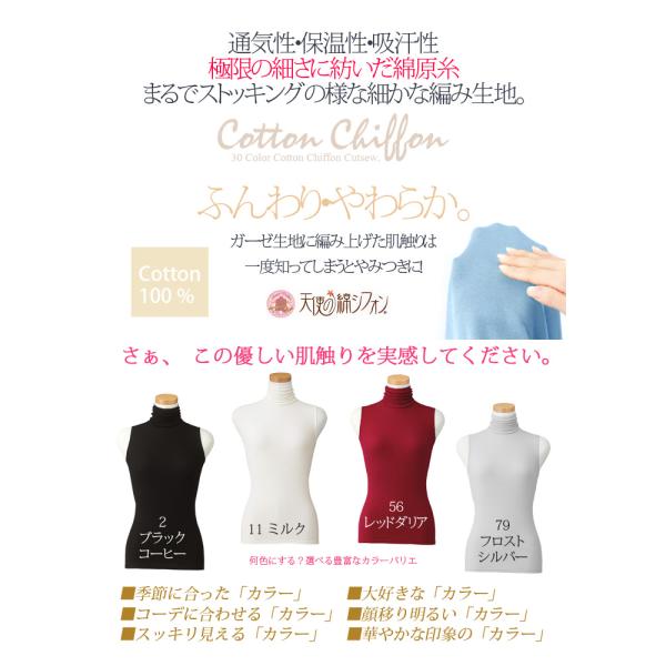 2026春夏 新色 全40色 天使の綿シフォン ハイネック ノースリーブ タンクトップ 綿100% ダブルガーゼ レディース タートルネック ボトルネック アイド 9913