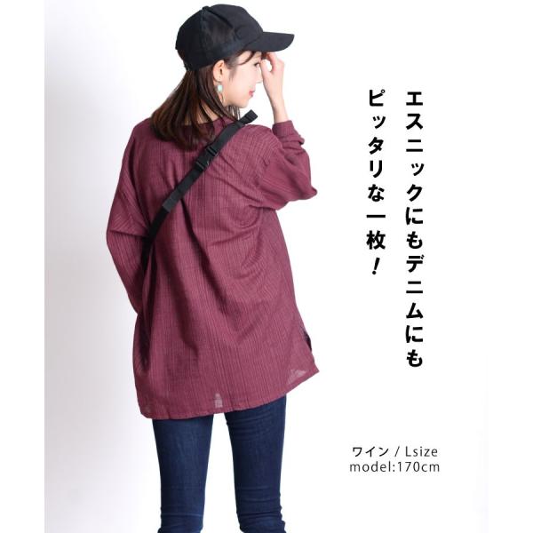 Tシャツ カットソー メンズ レディース 長袖 ユニセックス エスニック アジアン ファッション シャツ ブラウス 大きいサイズ トップス 秋冬 キーネック 個性的
