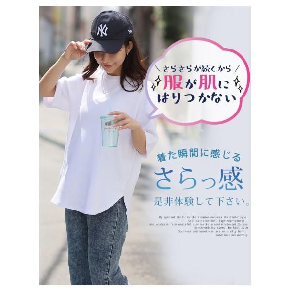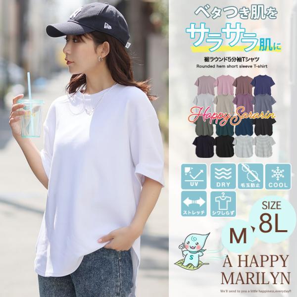 大きいサイズ レディース トップス 新色追加 ハッピーさらりん 裾ラウンド 五分袖 Tシャツ カットソー プルオーバー LL 3L 4L 5L 6L 7L 8L 夏 SE