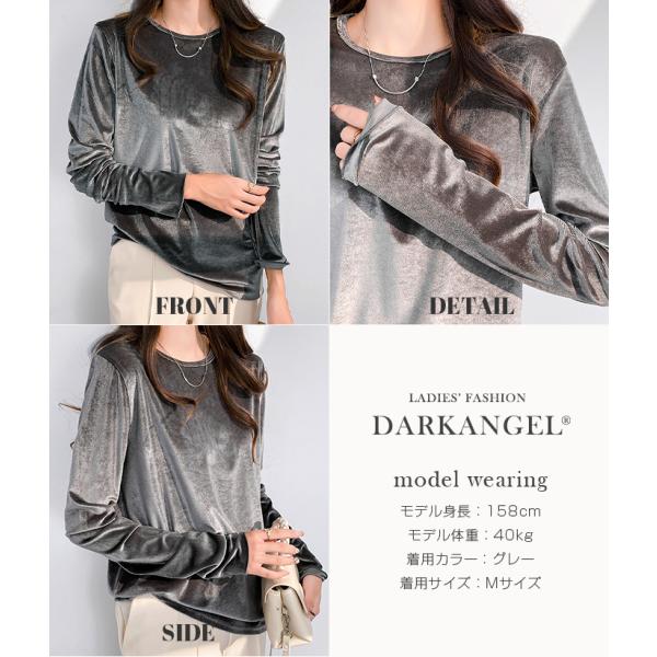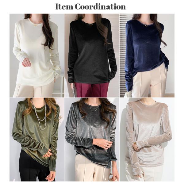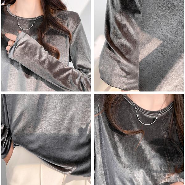 ベロアトップス カットソー レディース 秋 冬 長袖 ロンT ベロア ベルベット ベロアトップス クルーネック インナー 上品 華やか