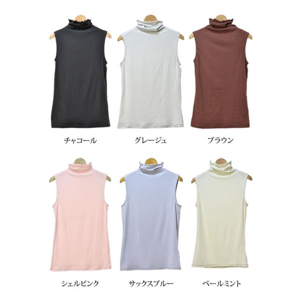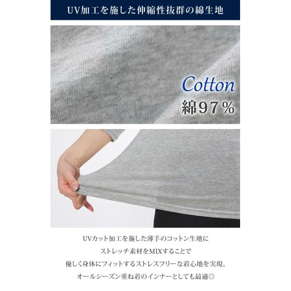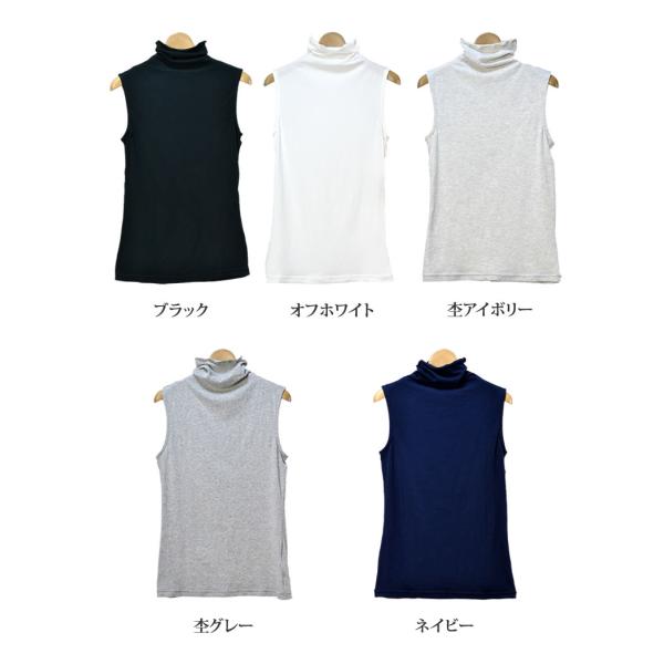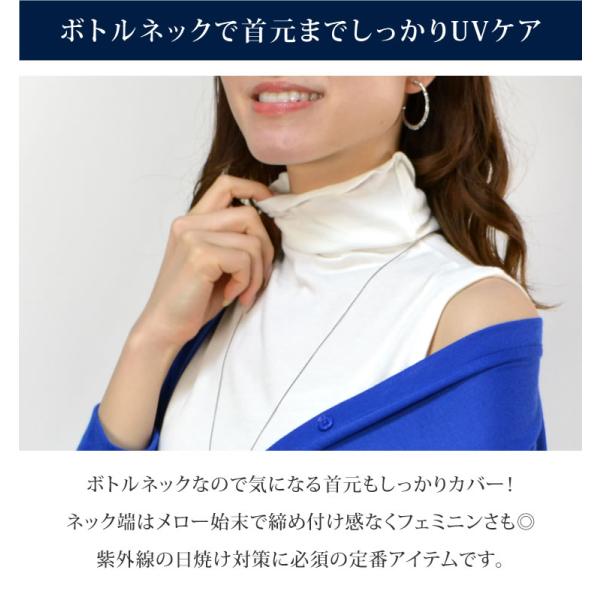 UVコットン インナー メロー ボトルネック タンクトップ レディース 綿 トップス ハイネック 薄手 ストレッチ カットソー ノースリーブ