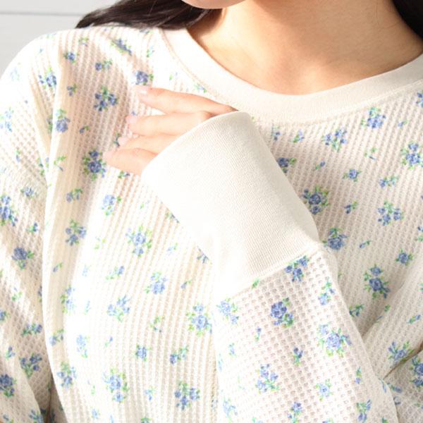 レディース ルームウエア jemorgan 花柄 切り替え ワッフル カットソー jemorgan JD071-59s ジェーイーモーガン リラックスウェア インナー