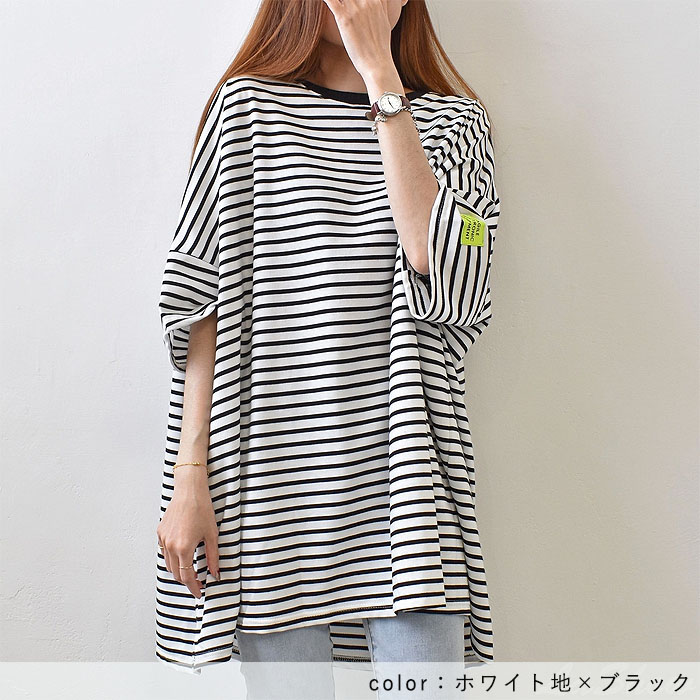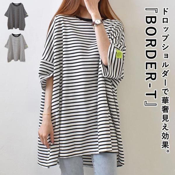 Tシャツ レディース カットソー 半袖 おしゃれ 大きいサイズ ボーダー トップス 春 夏 白 黒 レイヤード 重ね着 30代 40代 50代 [郵2]^t1101^