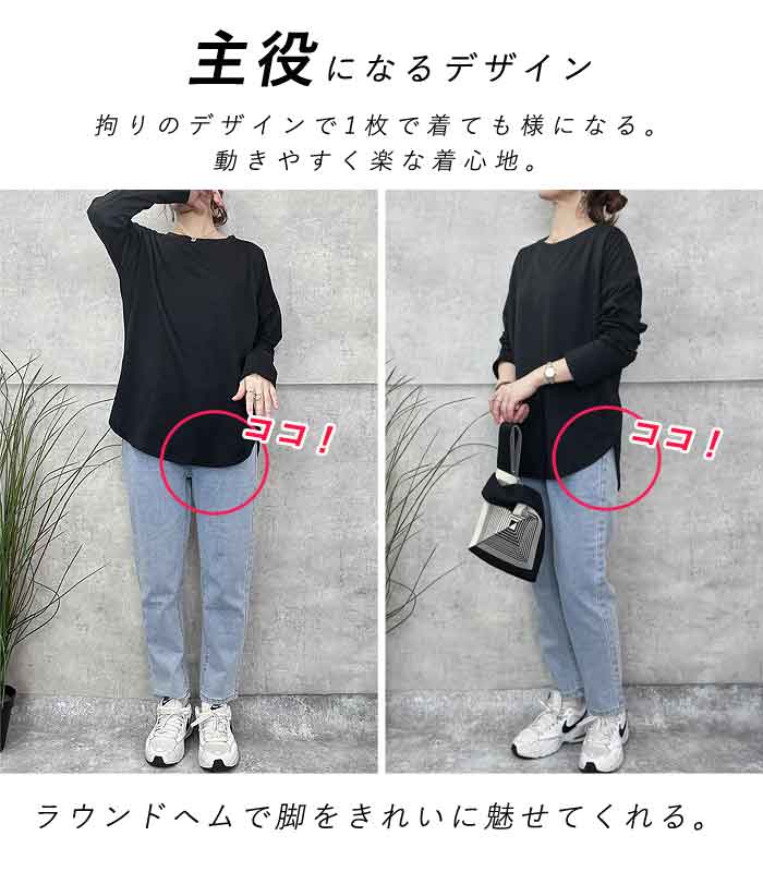 1743円 3点購入クーポンで! Tシャツ レディース トップス ロンT 長袖 春 秋 黒 白 おしゃれ かわいい 30代 40代 50代 ボーダー 柄 テールカット [郵2]^t778^