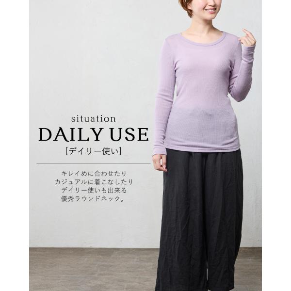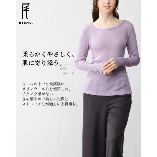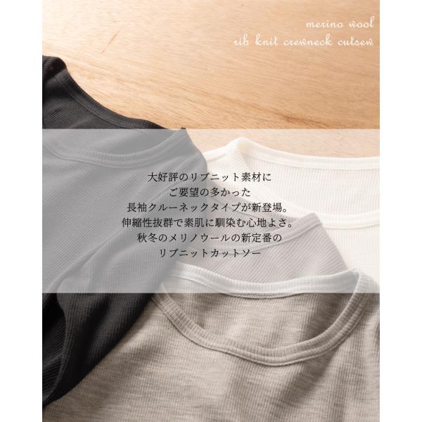 メリノウール 尾州ウール クルーネック レディース 長袖 インナー チクチクしない ウール100% リブニット 日本製 ファッション 毛100% リブ