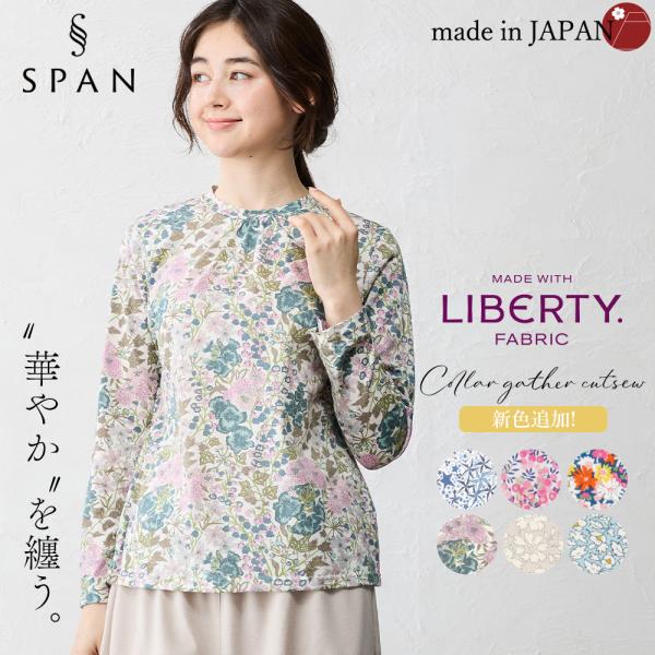 リバティ カットソー 日本製 プリント 綿100% ラウンドネック コットン 綿 Tシャツ プルオーバー ジャージ 伸縮性 レディース トップス 長袖 リバティ生地
