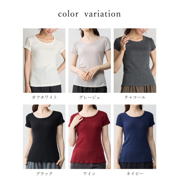 メリノウール 日本製 リブ クルーネック tシャツ インナー レディース 半袖 登山 インナー ベースレイヤー カットソー