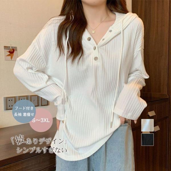 長袖パーカー プルオーバー レディース 長袖Tシャツ フード付き カットソー ス 体型カバー カジュアル ゆったり シンプル 春秋 柔らかい