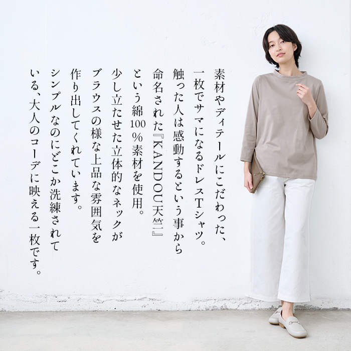 ロンt 長袖tシャツ カットソー レディース 40代 50代 コットン100% Kandou天竺 立体 クルーネック Tシャツ 日本製