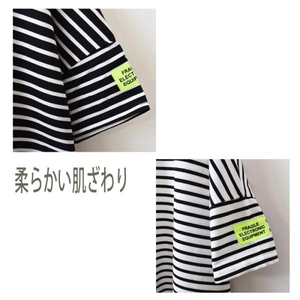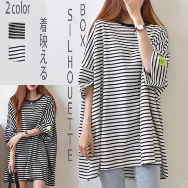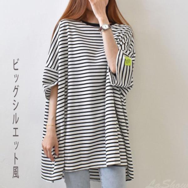 tシャツ レディース ロンT ボーダー 半袖 トップス ビックシルエット シンプル ボックスシルエット 5分袖 ゆったり カットソー 大きいサイズ 春 夏 夏服 秋服