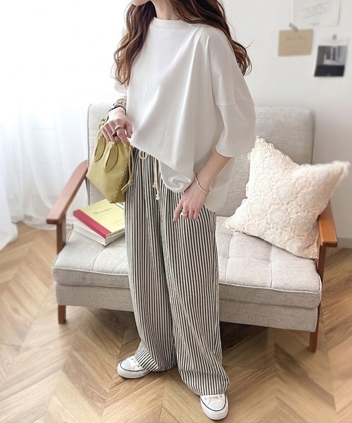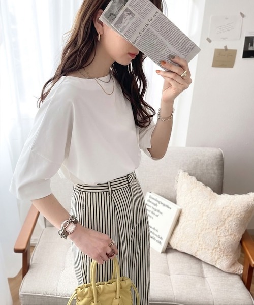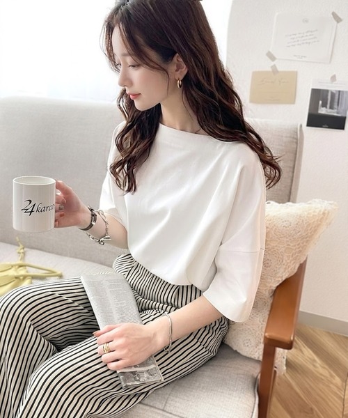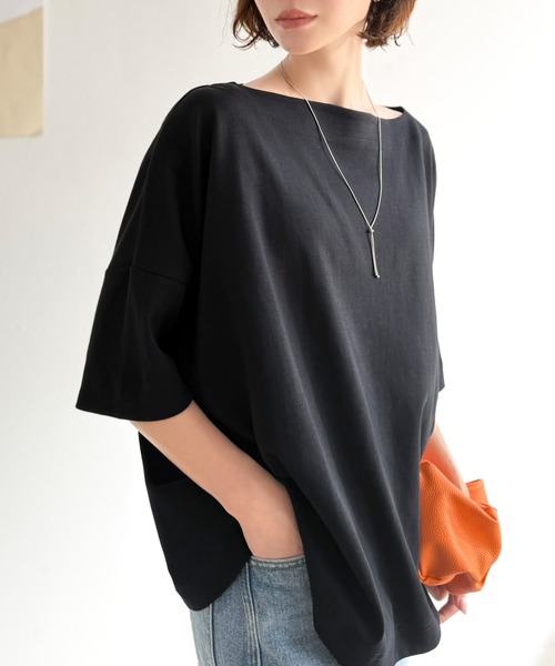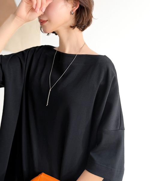 tシャツ 綿100%、さらり滑らか。華奢見せ、シンプルルーズプルオーバー レディース