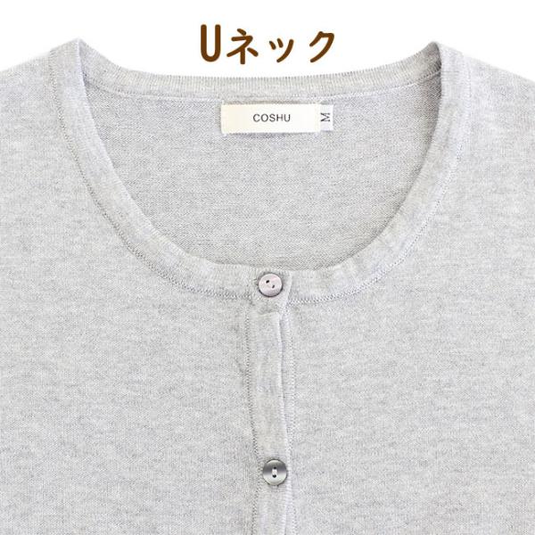Uネック カーディガン 綿100% ラウンド 無地 ニット カーデ レディース コットン 長袖 羽織り 大きいサイズ オールシーズン オフィス カジュアル 爆買