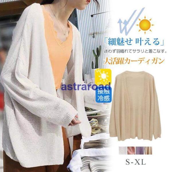 カーディガン UVカット サマーニット 長袖 ゆったり 紫外線対策 冷房対策 薄手 カーデ ひんやり 涼 夏