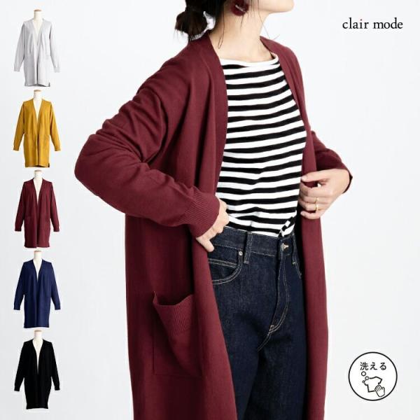 【送料無料/再入荷】 トッパーニットカーディガン 5色 M-L 洗える 長袖 レディース トップス アウター カーディガン ニット 無地 羽織り ミックス糸 体型カバー